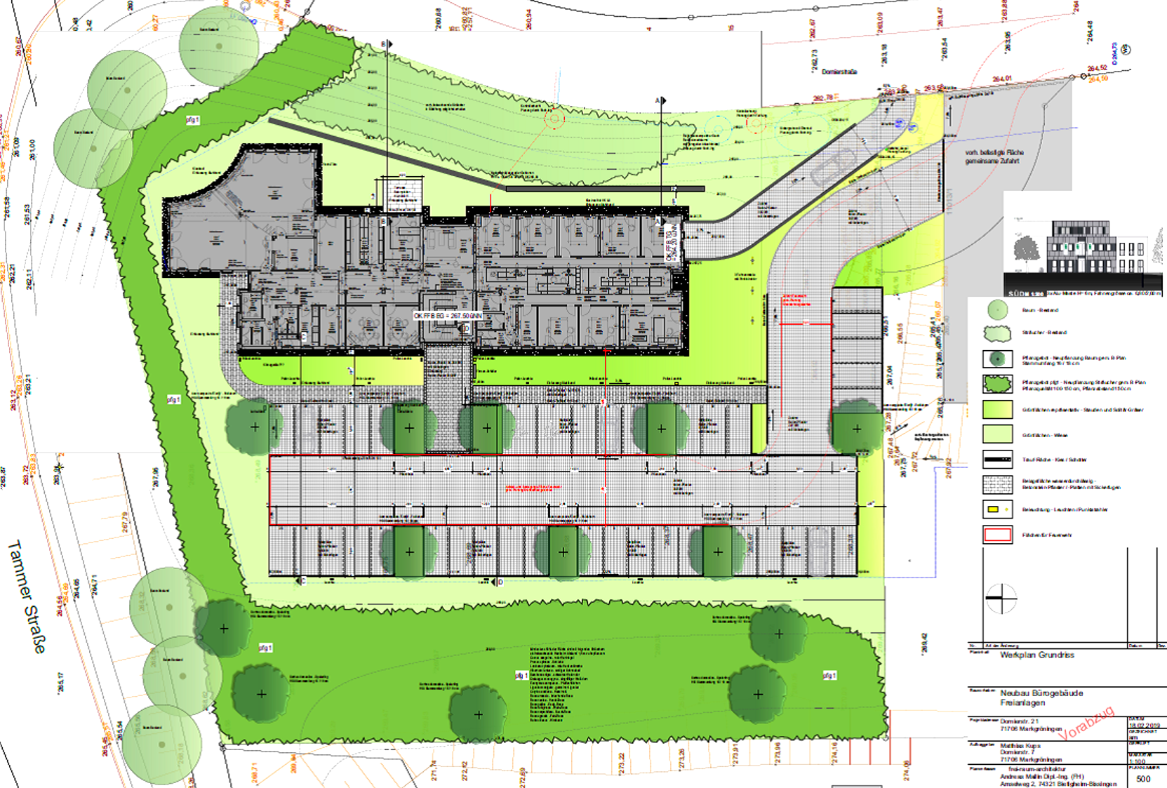 Freianlagen für den Neubau eines Verwaltungsgebäudes.