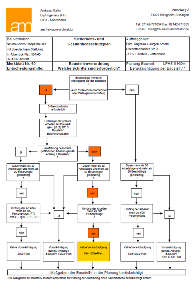 Erstellung des Sicherheits- und Gesundheitsschutz-Planes mit Baustellenordnung und Aushängen für ein Doppelhaus-Neubau.