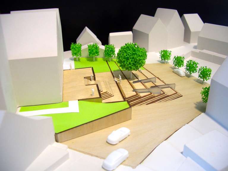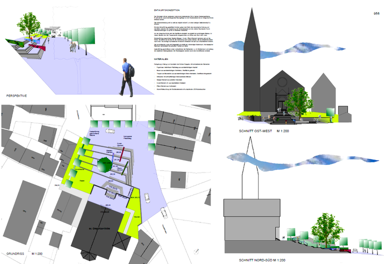 Der Kirchplatz mit der markanten Linde soll als ein zusammenhängendes Raumgefüge von der Straßenebene bis zur Kirche wieder erlebbar werden.