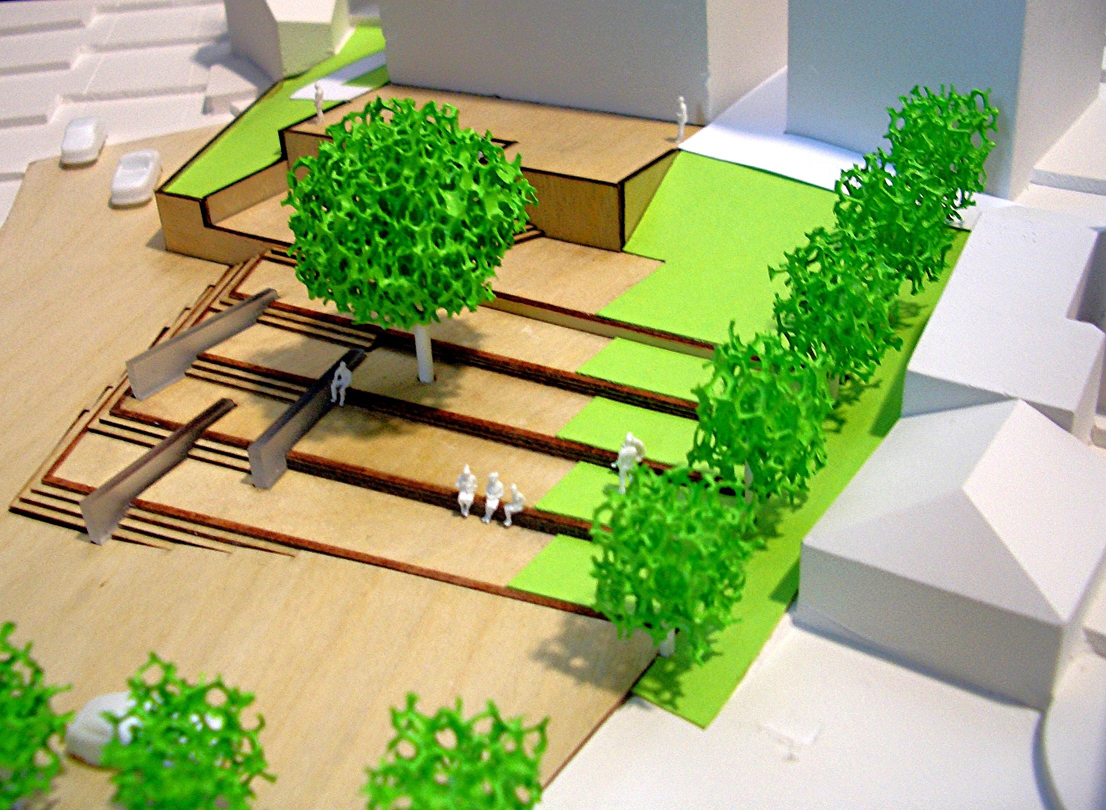 Die raumprägende Linde wird freigestellt und erhält den notwendigen Bodenraum. Zur Betonung der Platzkanten sollen kastenförmig geschnittene Linden gepflanzt werden.