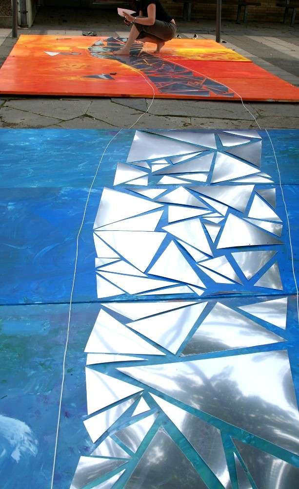 Spiegelfolie und farbig-transparente Platten erzeugen spannende Lichtreflexe.