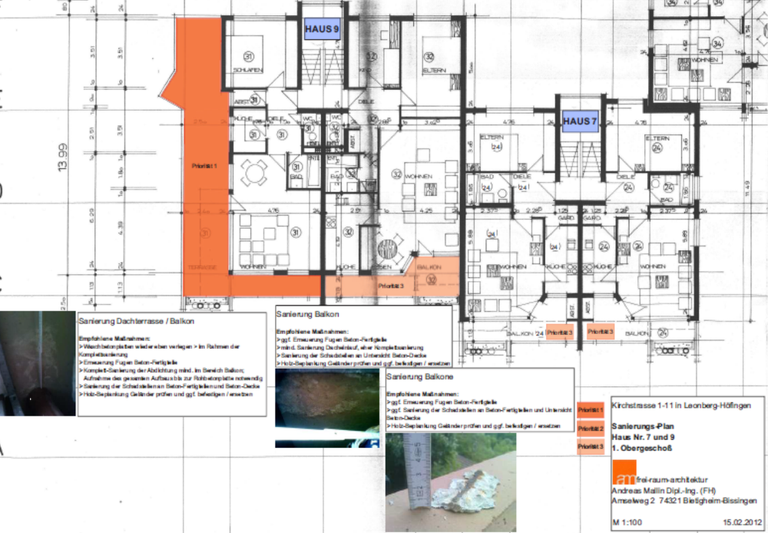 Planung, Ausschreibungen und Bauüberwachung zur Sanierung der Dachterrassen und Balkonen, Erneuerung der Fenster-Elemente und Lüftungs-Anlagen.