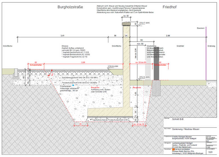 Friedhof Stuttgart-Münster - Sanierung Friedhofsmauer
