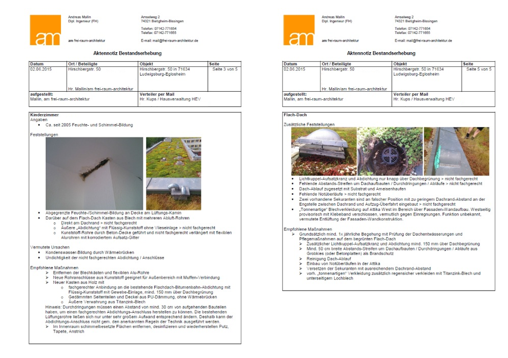 Begehung zur Bestandserhebung und sorgfältige Dokumentation.