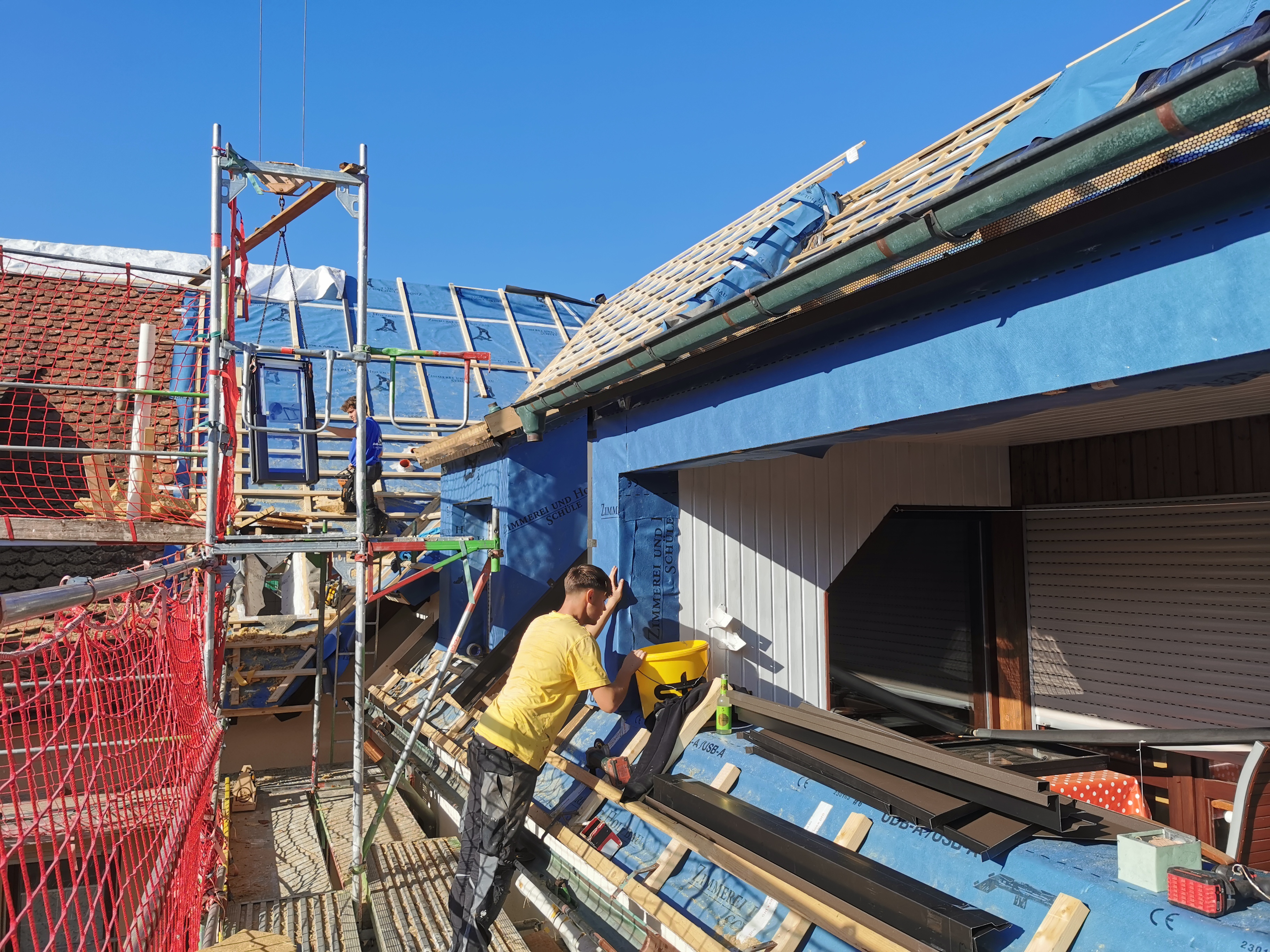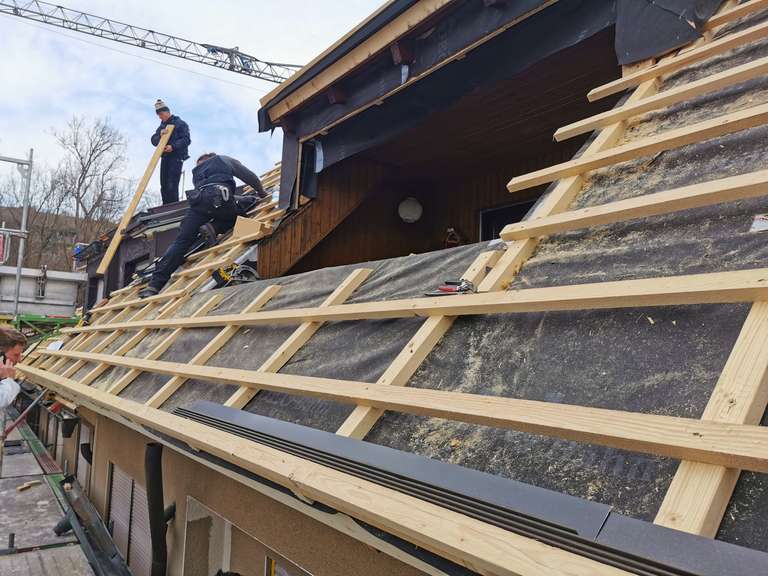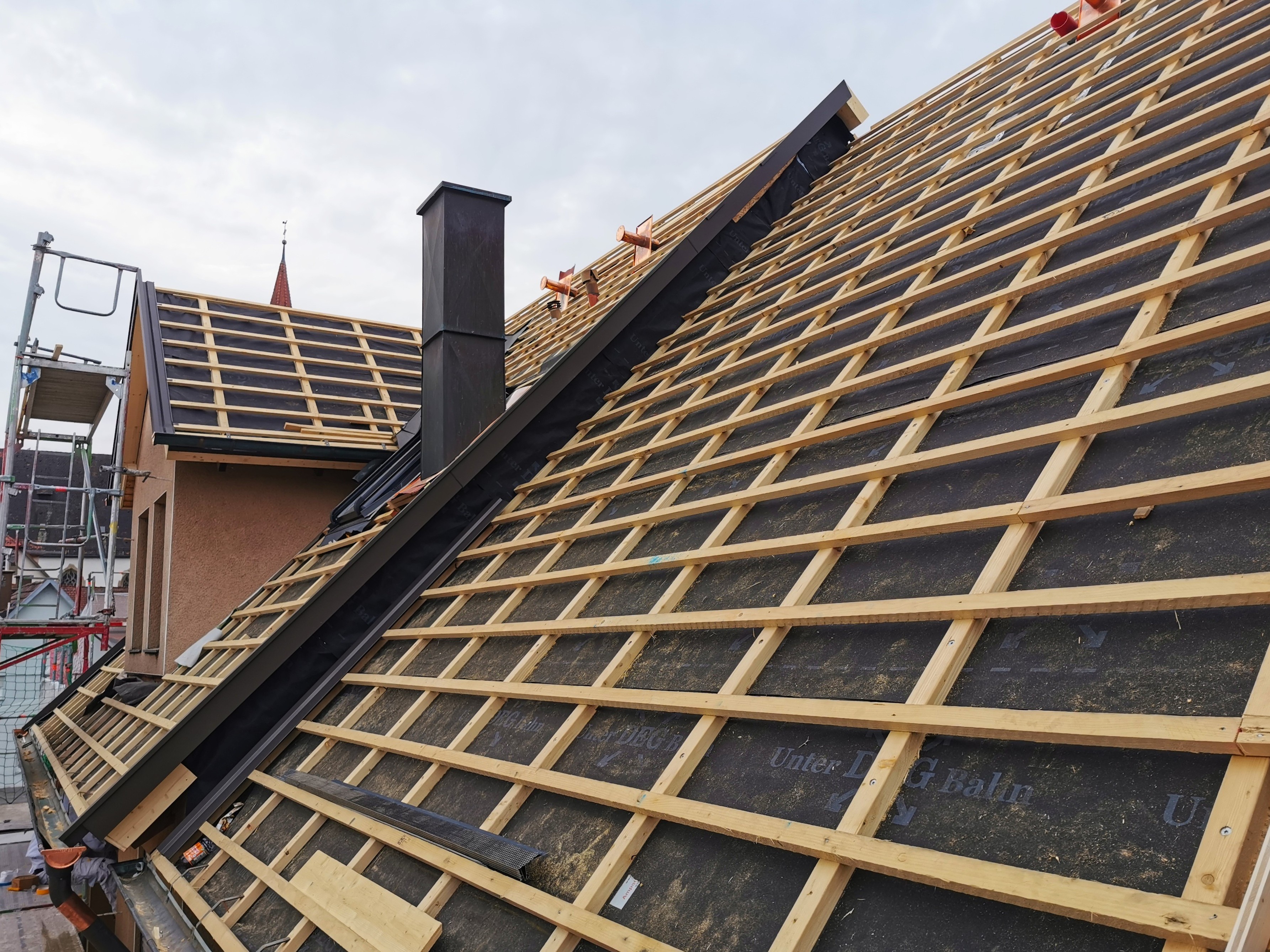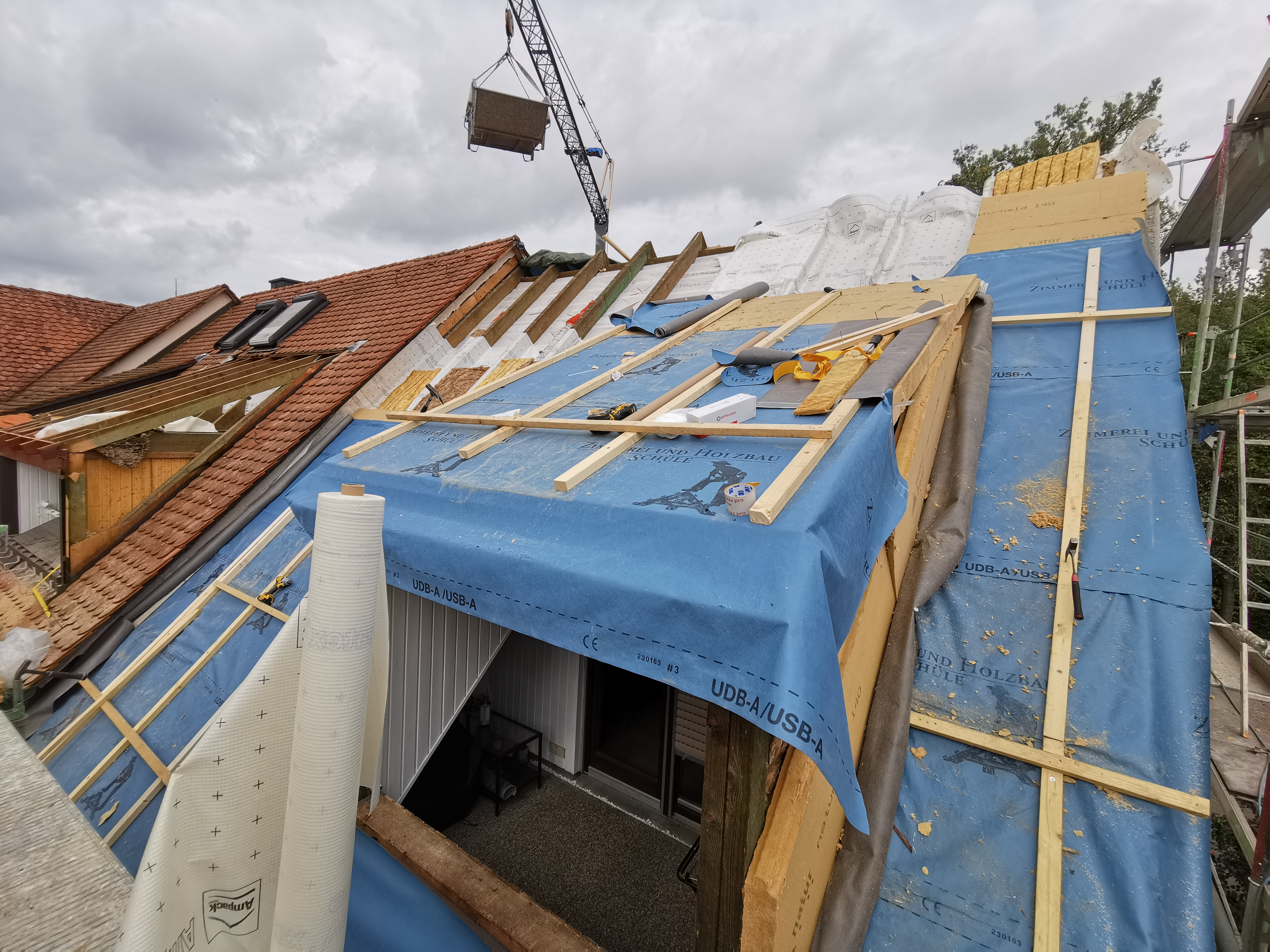 Planungen, Ausschreibungen und Bauüberwachung zu Dach- und Fassaden-Sanierungen von zwei Mehrfamilienhäusern mit Baugesuch zur Einhaltung der Gestaltungssatzung Ortskern Bissingen. Energetische Dachsanierung mit U-Wert-Berechnungen und Förderung energetischer Einzelmaßnahmen nach BEG.