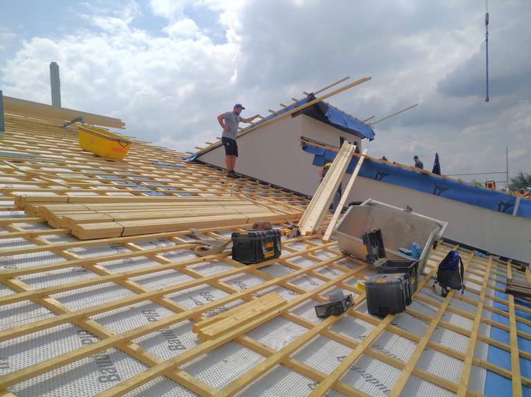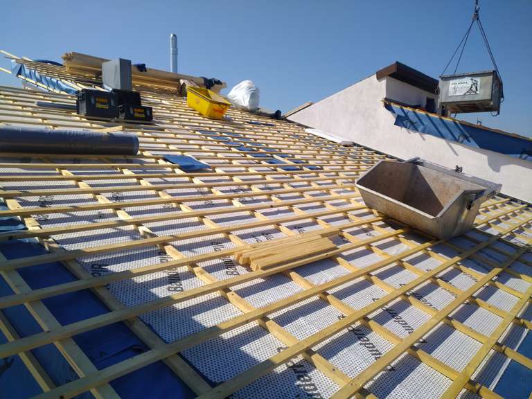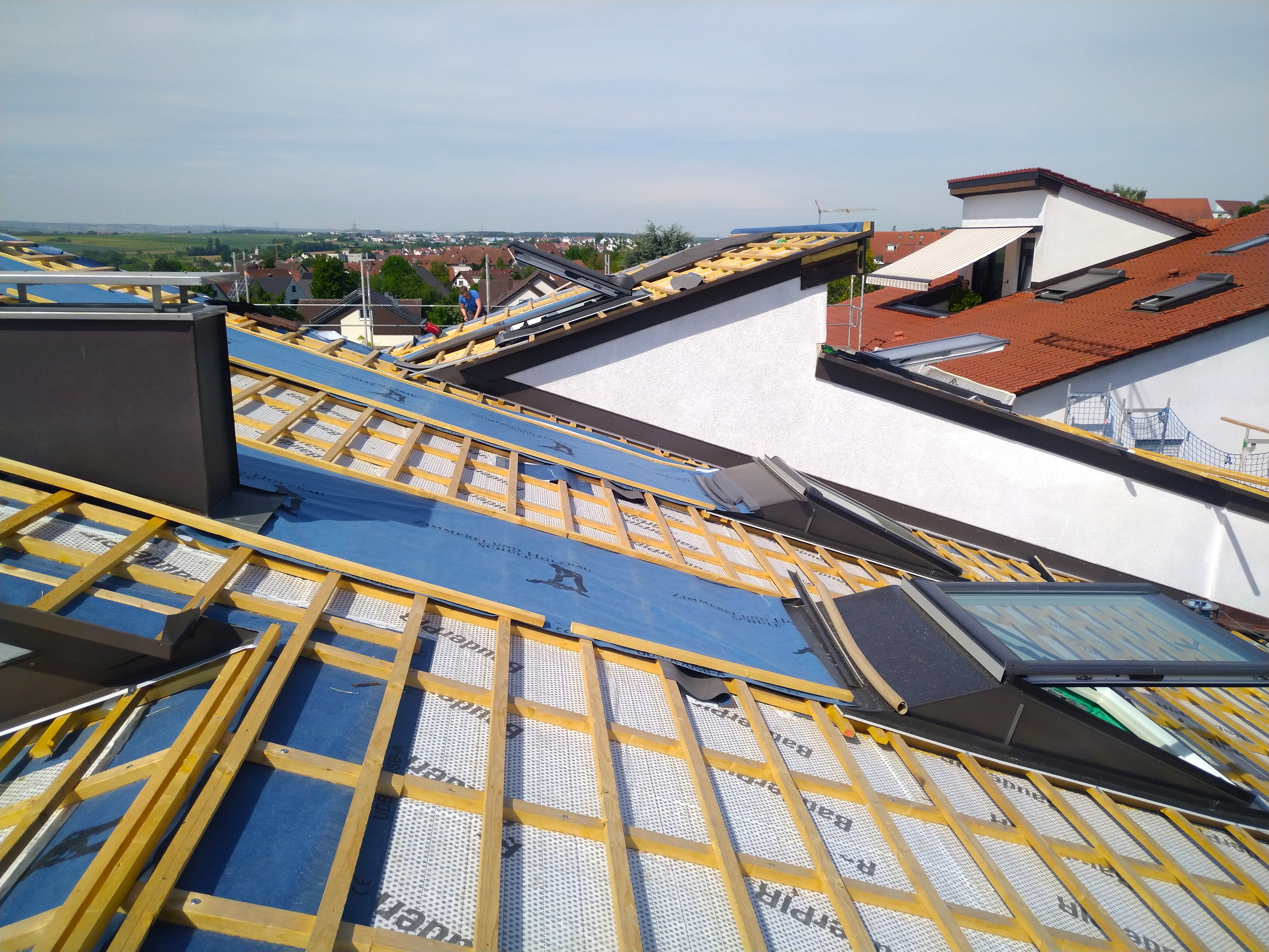 Planungen, Ausschreibungen und Bauüberwachung zu Dach-Sanierungen von zwei Mehrfamilienhäusern. Energetische Dachsanierung mit U-Wert-Berechnungen und Förderung energetischer Einzelmaßnahmen nach BEG.