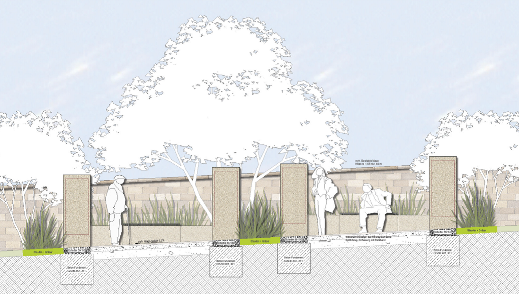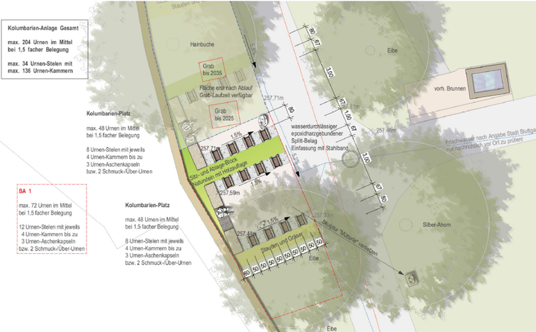 Auf einer Fläche entlang der Friedhofmauer sollen im ersten Bauabschnitt mehrere Urnen-Stelen entstehen.
