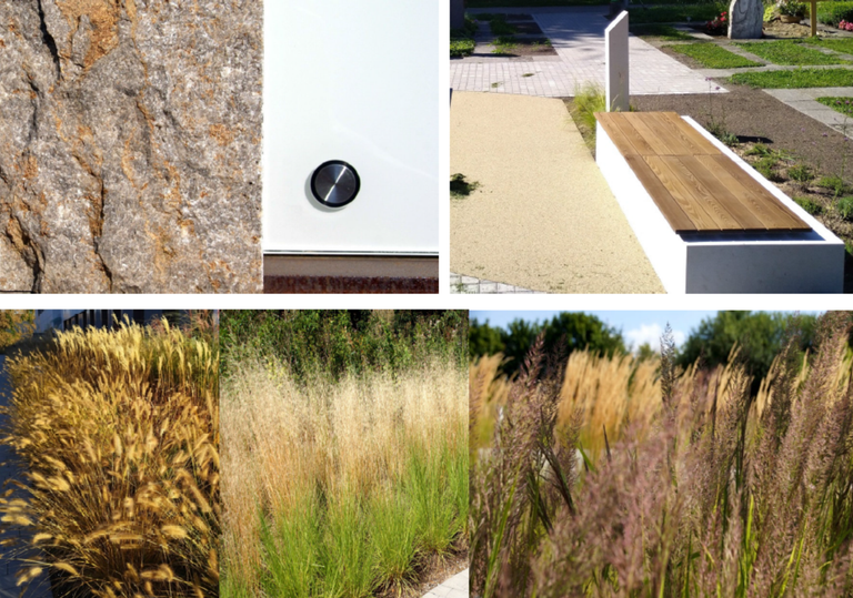 Die Kontrastwirkungen der verschiedener Materialien, aufstrebende Wandscheiben, schwebende Urnenkammern und Überstände mit Licht-Schatten ergeben eine detailreiche und luftige Gestaltung.