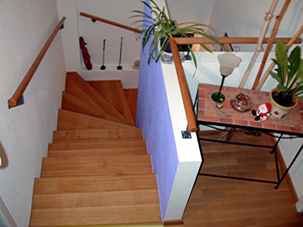 Erschliessung des Obergeschosses durch Entfernung eines Deckenbereiches und Einbau einer neuen Innentreppe.