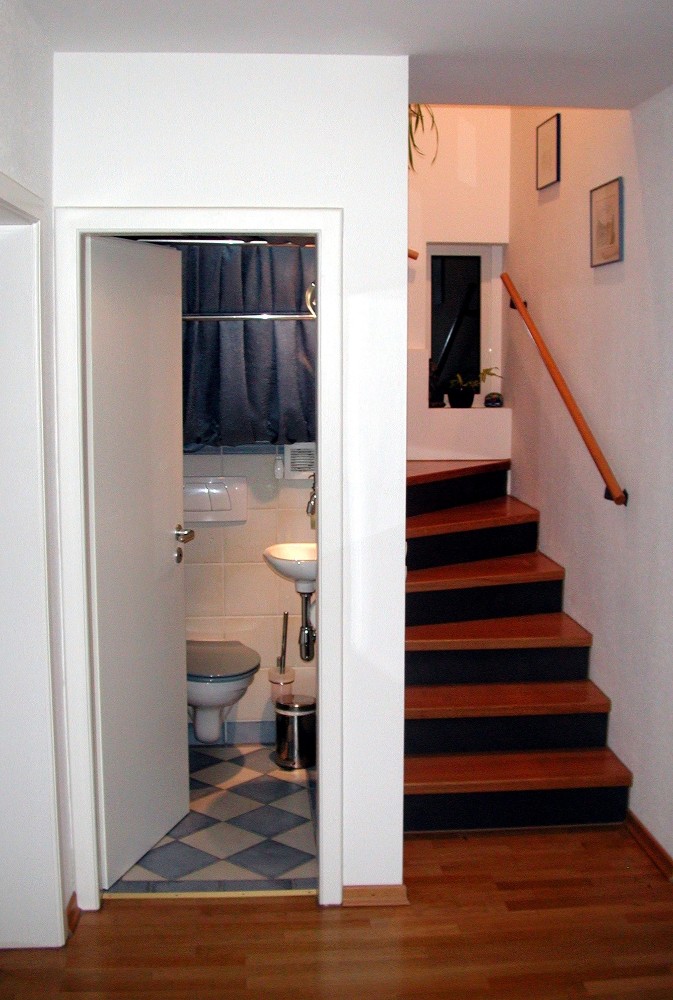 Erneuerung der Sanitärbereiche mit Einbau eines WC unter der neuen Innentreppe.