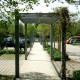 Betonung der fußläufigen Erschliessung mit grosszügigem Eingangsbereich, Pergolen und Portal.