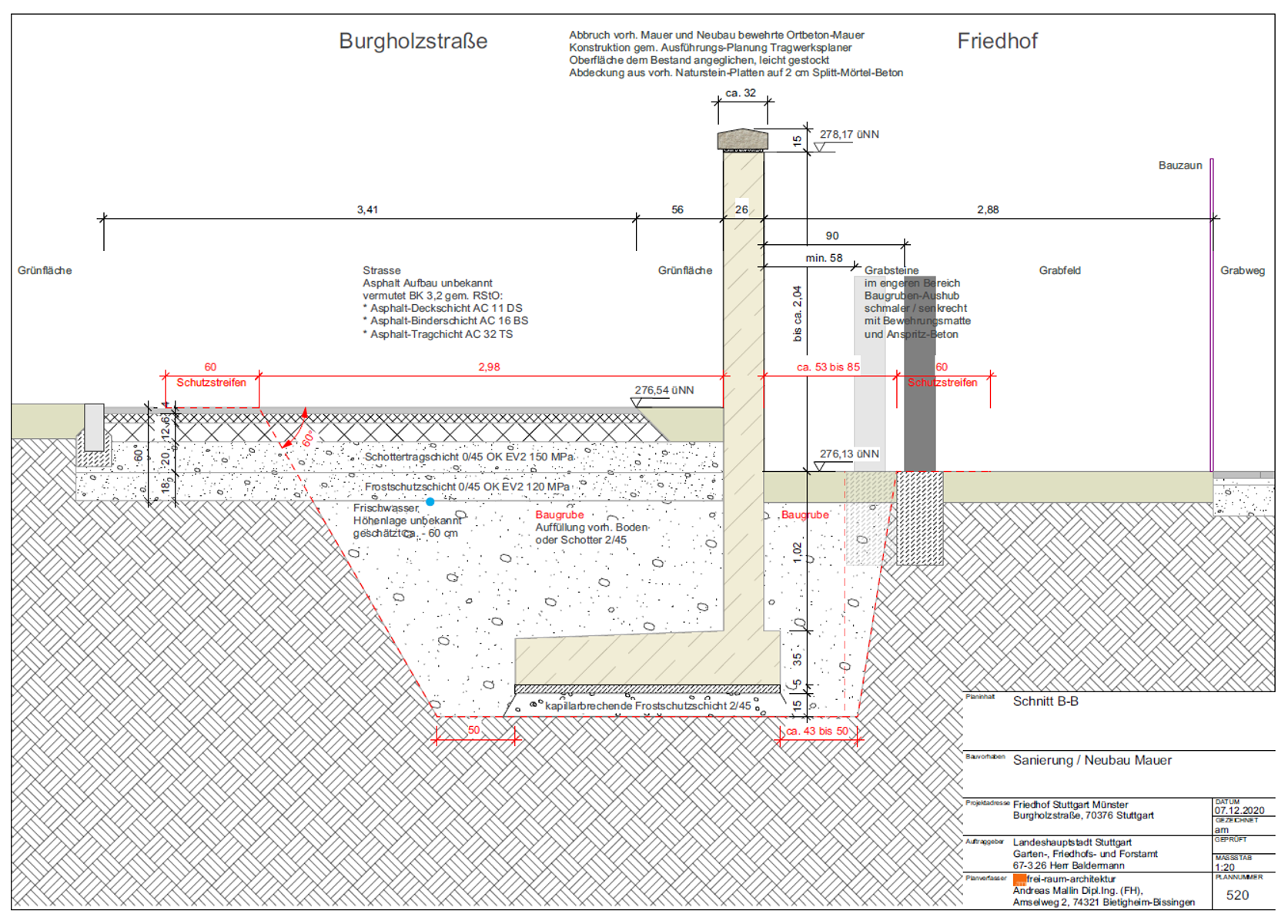 Friedhof Stuttgart-Münster – Sanierung Friedhofsmauer