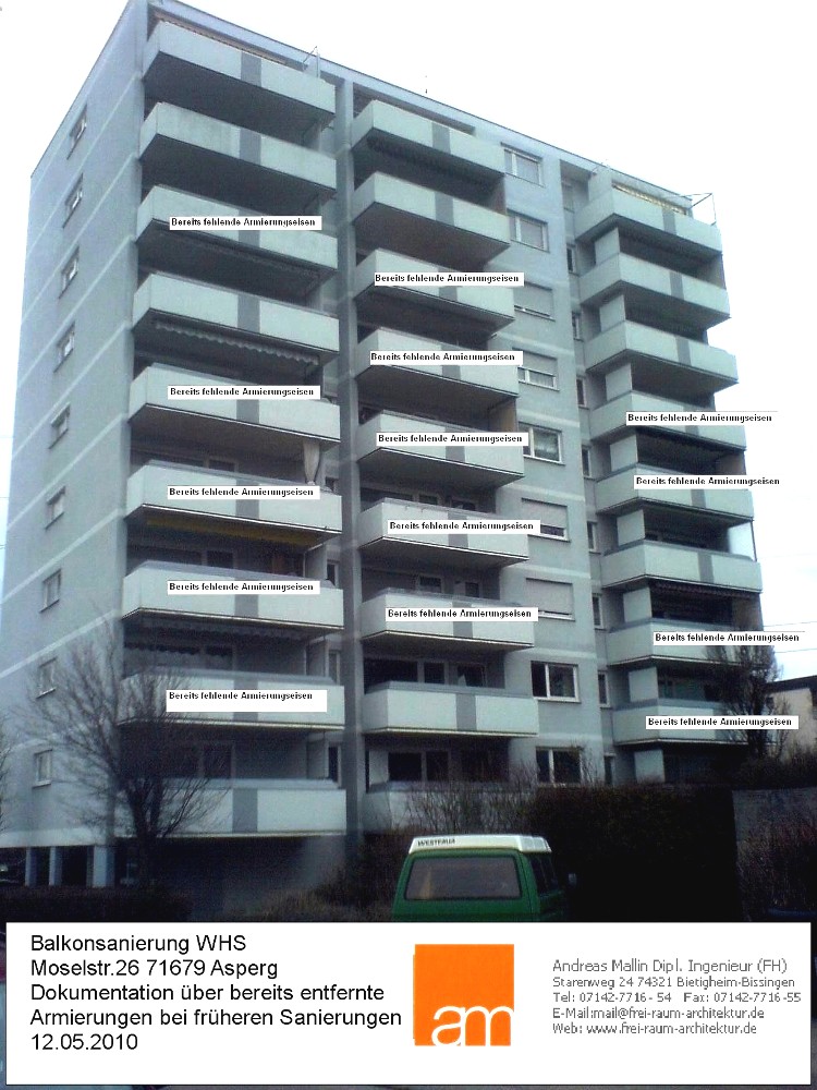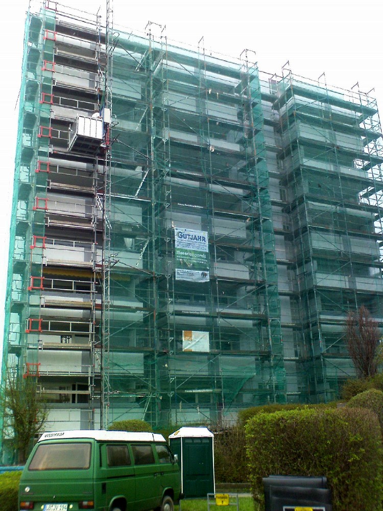 Begutachtung, Planung, Ausschreibungen und Bauüberwachung zur Sanierung der Balkone, Fassade und Dachbereiche eines Hochhauses