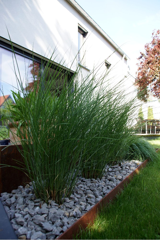 Vorhandene Vegetation wurde behutsam integriert und u.a. mit vielgestaltigen Gräsern und Bambus ergänzt.