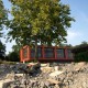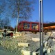 Ein nicht begrünbarer Hang wurde zur Steinlandschaft, die als aktive Spielfläche zu freien Spielsituationen und Veränderbarkeit auffordert mit Schotter-/Kiesflächen, Findlingen und Baumstämmen.