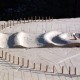 In einer skulpturalen Gesamtform entwickelt sich die Anlage vom Zentrum aus in wellenförmiger Geländemodellierung kreisförmig nach Aussen.