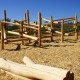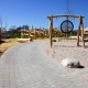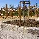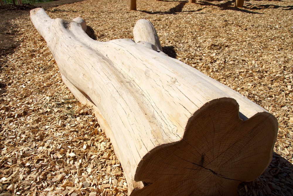 Die Spielgeräte sind überwiegend aus natürlichen Materialien, die dem Standort am Übergang zur Landschaft entsprechen.