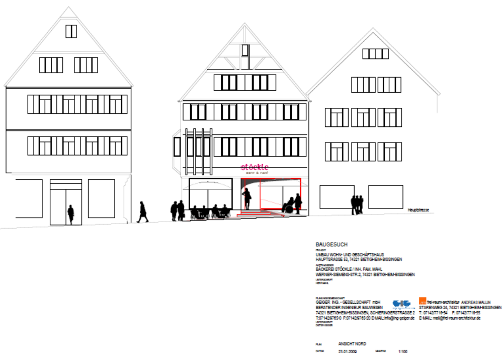Bestandserhebung, Vorplanung und Genehmigungsplanung zum Umbau und Sanierung eines Wohn- und Geschäftshauses.